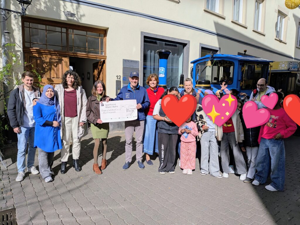 Cette année, nous avons pu remettre fièrement 2 000 € au Kinderschutzbund (association de protection de l'enfance) et inviter les enfants à faire un tour en train sur le Kuhberg. Les enfants se sont vraiment amusés et pour la formidable équipe du Kinderschutzbund Bad Kreuznach e.V., ce fut un changement de rythme bienvenu. Nous admirons beaucoup leur travail et considérons qu'il s'agit d'une contribution extrêmement importante pour la société.